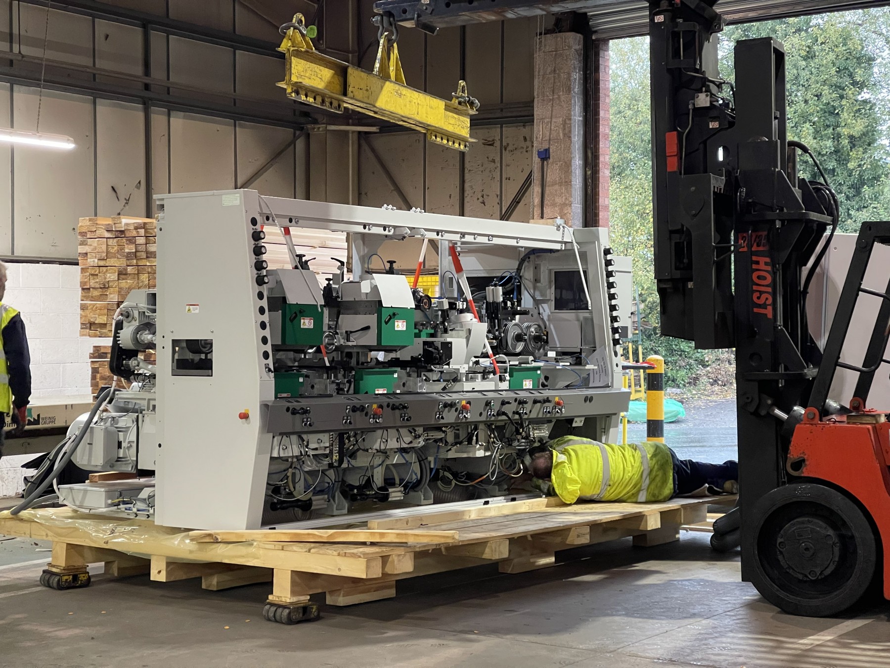 Here are a few photographs of the arrival and initial installation of our new Weinig Powermat 3000 planer/moulder.
